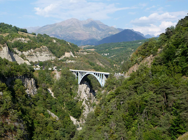 Der untere Teil der Nordrampe geht durch eine Schlucht, in deren Tal der Fluß Drac fließt. Auf dieser Brücke musst die Schluchtseite gewechselt werden, bevor man 3 Kilometer später am Ende der Rampe ankommt, die auf der Hauptstraße N85 mündet.