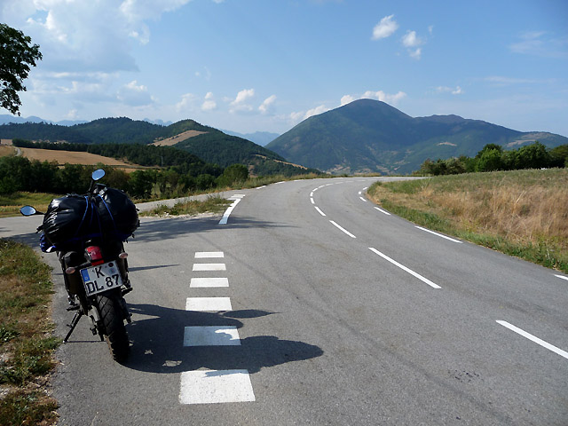 Der Blick geht nach Norden. Der Accarias liegt auf der D526, links im Bild ist die Abzweigung auf die D34c zu sehen, die 2 Kilometer später auf die D34 trifft.