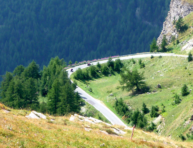 Diese Stelle liegt direkt am Abgrund, ist mehrere Kilometer von der Passhöhe entfernt, kann von dieser aber gesehen werden.