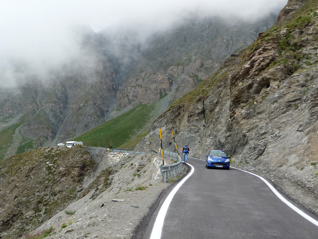 Auf den letzten Metern vor der Passhöhe wird es sehr kahl und felsig, die Abhänge sind nur selten abgesichert.