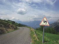 Ab Colmars geht es dann langsam los, so richtig aber erst 7 Kilometer vor der Passhöhe, nahe la Foux d'Allos. Dort schraubt sich die Straße endlich auf vielen Kehren und Kurven die Skipiste hoch. Links und rechts ist es sehr kahl, weite Wiesenflächen sind zu sehen, nicht selten von Liftanlagen durchzogen.