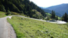 Hinter dem Tunnel ist es links und rechts noch rund 3 Kilometer etwas felsiger, aber ab dem Mini-Ort Manant wird die Umgebung weniger kantig und auch erstmal weniger kurvig. Der Bereich zwischen den Berghängen ist immer dicht bewaldet und häufiger von der Straße aus sichtbar. Auf der ein oder anderen Weide können einige Tiere untypischer Arte begutachtet werden, denn Lamas würde ich eher den südamerikanischen Anden zuordnen als einem kleinen Alpendorf.