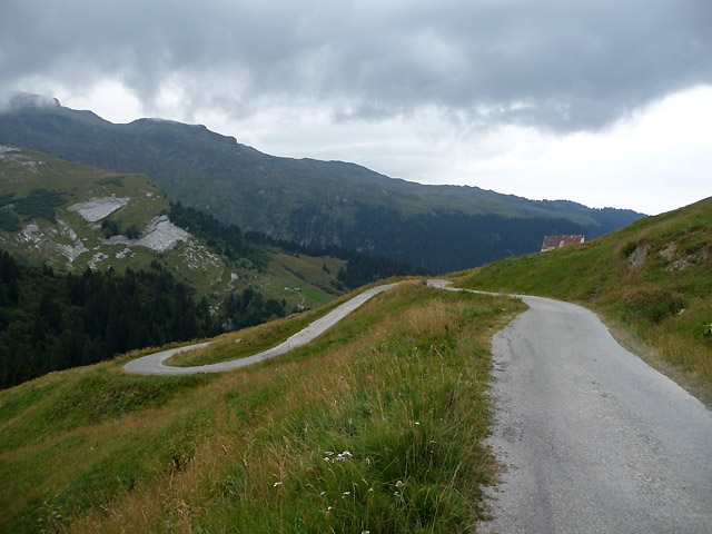 Von der Passhöhe kommend wird auf halbem Weg zum Stausee