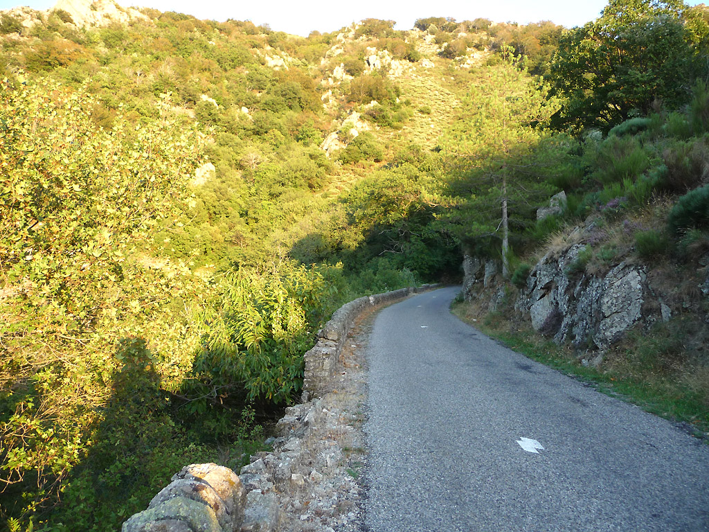 In Fahrtrichtung geht es wieder in etwas dichter bewaldetes Gebiet, es kommen noch eine Linkskurve und anschließend eine Gerade, und schon ist die Passhöhe erreicht.