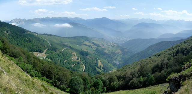 Noch von der Passhöhe, oder auch ein paar Meter auf der Ostrampe, hat man einen schönen Blick ins Tal, rund die Hälfte der ganzen Rampe ist im Bild festgehalten. Aufgenommen wurde es im Jahr 2009, das neuere von 2014 ist rechts zu sehen.