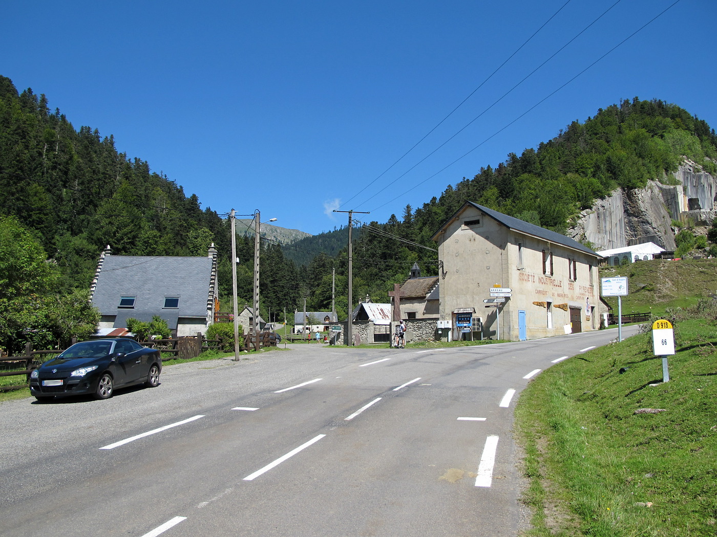 Im Ort Espiadet kann von der Hauptstraße nach links (Norden) auf schmalerem Pfad zum Col de Beyréde(i) abgebogen werden. Rechts geht es weiter nach Süden zur nicht mehr weit entfernten Passhöhe des Col d'Aspin.