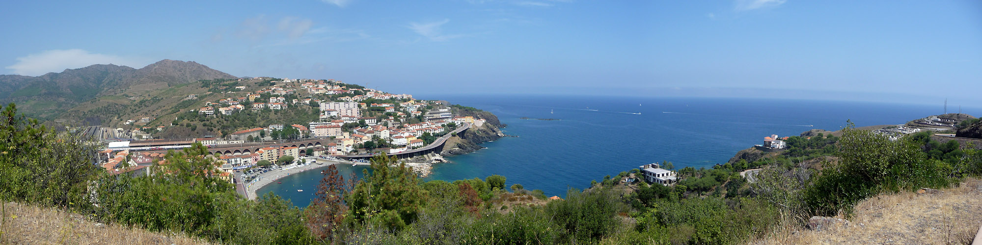Auf der französischen Seite kurz unterhalb der Passhöhe liegt der Ort Cerbère und seine anliegende Bucht. Der Strand ist nicht das Gelbe vom Ei, und alles ist dicht bebaut, aber trotzdem ists ein schöner Anblick.