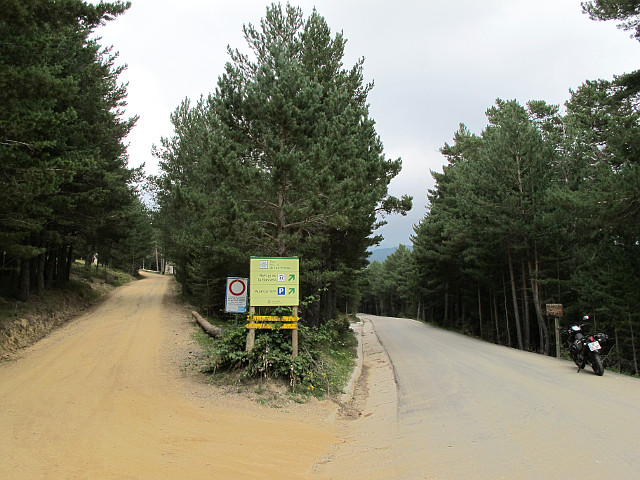 Von der Passhöhe aus führt die rechte, asphaltierte Straße weiter nach Norden zu einer großen Unterkunft und endet dort. Die linke Naturpiste schlängelt sich durch den Wald, stetig nach Osten und ins Tal. Alles geschottert, soweit mir bekannt auch alles für Motorisierte freigegeben.