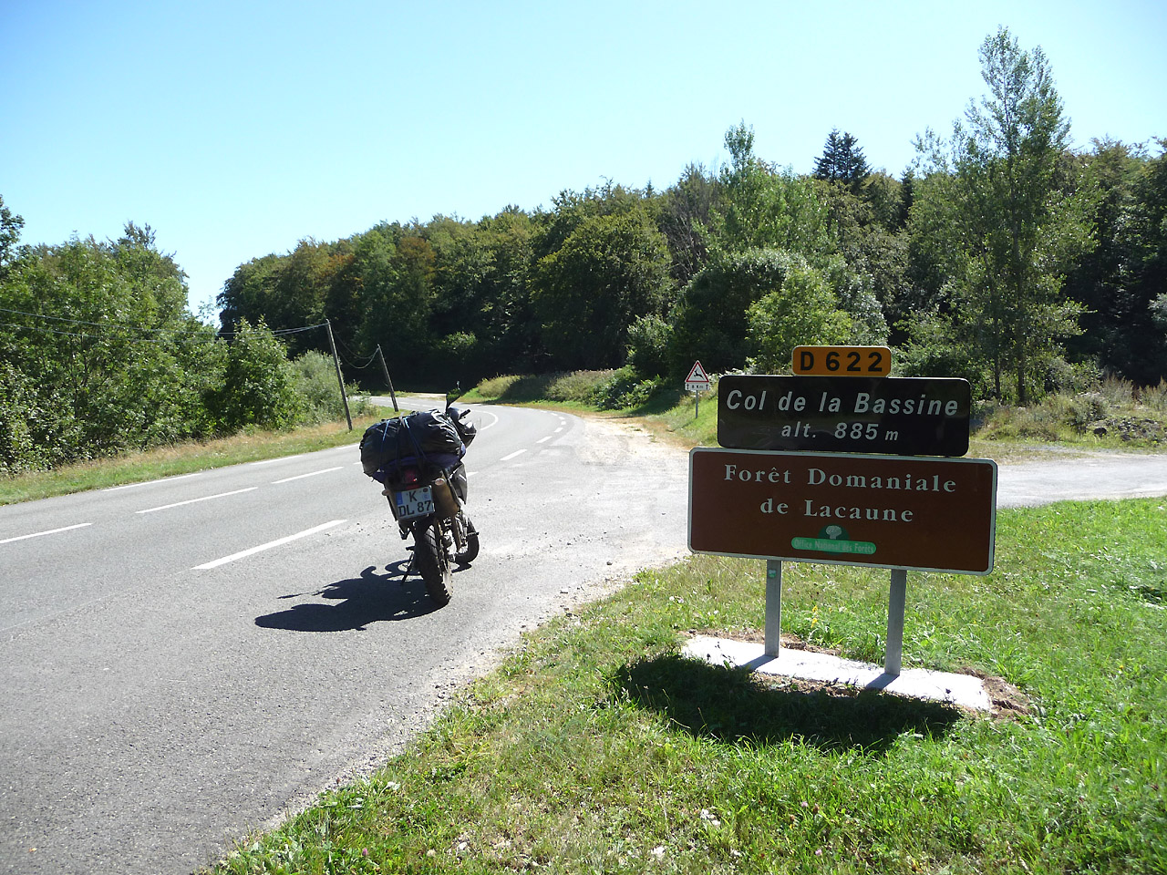 Der Blick geht nach Osten. Rechts hinter dem Passschild ist die kleine Einfahrt auf den Parkplatz, der von der Straße nicht einsehbar ist und daher ein ruhiges Päuschen ermöglicht.