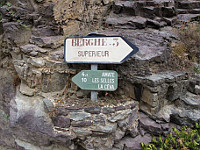 Von der Südrampe des Col di Tende(i) führt eine Stichstraße hoch zum Ort Bergue. Die Piste ist nur eine Spur breit, viele unübersichtliche Stellen machen sie durchaus ein wenig gefährlich, auf Gegenverkehr sollte man immer gefasst sein. Hin und wieder die Hupe verwenden ist sicher nicht verkehrt. Auch wenn sie recht uneben ist war sie im Jahr 2012 gut zu fahren.