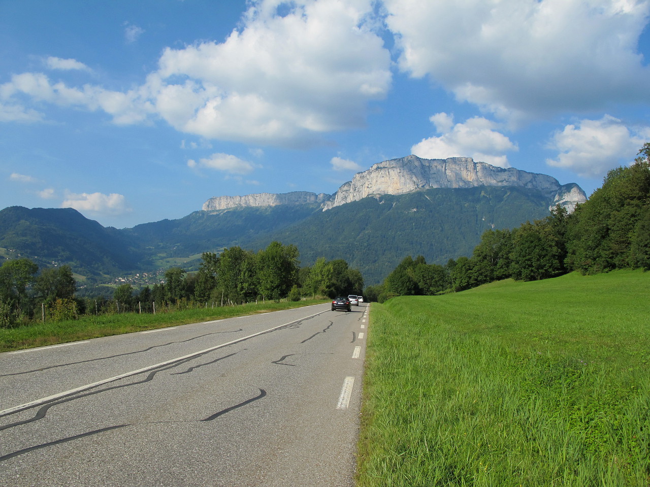 Bei der Abfahrt über die Nordrampe hat man ein ansehnliches Bergmassiv vor der Nase. Die Straße ist sehr gut ausgebaut, Kurven extrem langgezogen, Fahrspaß hält sich in Grenzen aber man kommt gut vorwärts.