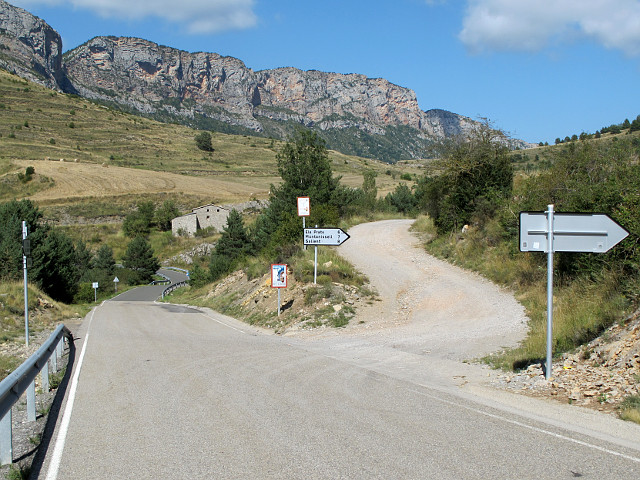 Mit der Passhöhe des Boixols im Rücken, rund einen Kilometer entfernt, taucht diese gleich von Beginn an staubige Abzweigung auf. Sie ist der Startpunkt gleich dreier einfach bis mittelschwerer Schotterstrecken, als da wären Sallent(i), Sant Joan(i) und Apallador(i).