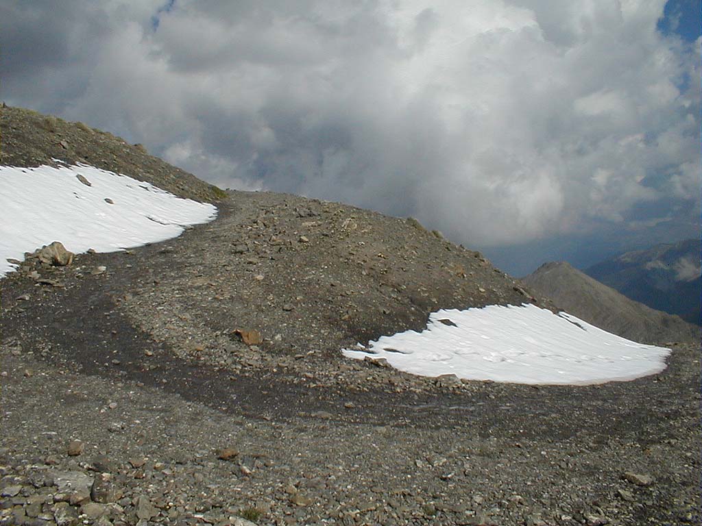 Eine der letzten Kehren vor Erreichen der Aussichtsplattform. Das Bild stammt aus dem Jahr 1999, zwischenzeitlich ist der Trampfelpfad nach oben eher als Weg zu erkennen.