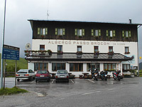 Direkt auf der Passhöhe befinden sich zwei Hotels. Das Hotel Pizzo degli Uccelli steht mittendrauf, das Albergo Passo Brocon (siehe Bild oben) steht am Hang zur Südrampe.