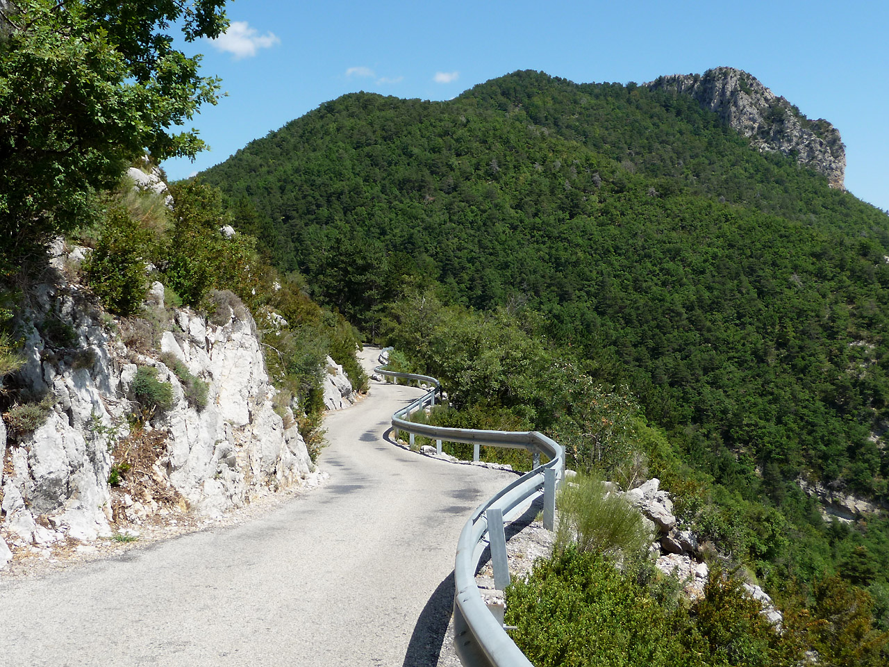 Das Bild wurde wenige Kilometer vor der Passhöhe gemacht. Es geht zwar nicht immer wie hier zu sehen an einer Schluchtwand entlang, aber häufig ist die Straße nicht viel breiter.