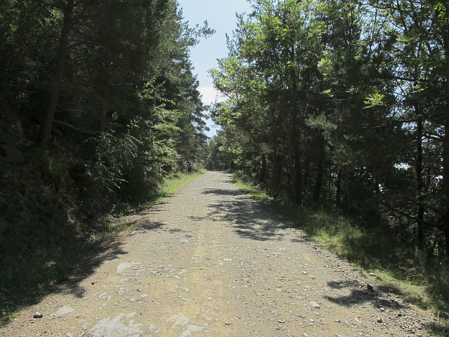 Im Bild sind mit die ersten Meter Schotter zu sehen. Nicht allzuweit in Fahrtrichtung taucht die letzte Kreuzung auf, danach geht es 20 Kilometer nur noch "geradeaus".