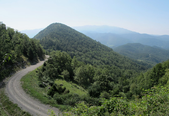 Die Westrampe ist komplett asphaltiert, führt teilweise durch dichten Wald, und das mit sattem Gefälle. Schön zu fahren. Irgendwann muss ich auch die nach