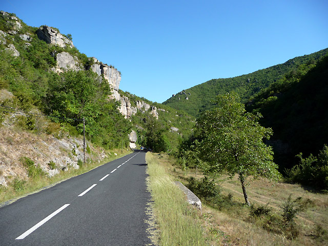 Im mittleren Bereich ist die Strecke etwas felsiger als im Westen, der Fluß Dourbie verläuft aber nicht mehr direkt neben der Straße und ist seltener zu sehen.