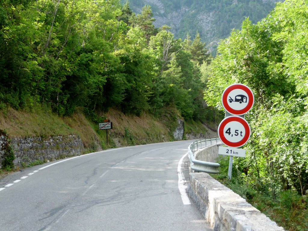Dieses Schild ist das Erste, was man hinter dem Ort Saint Martin d'Entraunes zu sehen bekommt. Im Grunde bedeutet es nichts anderes, als das schwere LKW und Caravane die Fahrt nach oben nicht behindern.