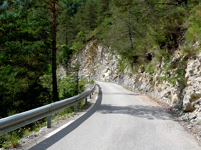 Auf der alten Strecke des Champs geht es über die D78, die Straße ist zum Teil sehr schmal und führt an Felswänden entlang.