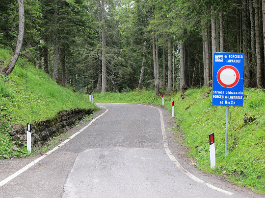 Sella Ciampigotto ist schön zu fahren. Untenrum geht es durch dichten Wald, obenrum warten 13 Kehren auf nur 4 Kilometern Strecke.