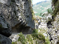 Nur ein paar Meter weiter bekommt man den tiefsten Blick in die Schlucht geboten, während die Straße wie auch zuvor sehr eng an einer fast senkrecht aufragenden Schluchtwand entlang führt.