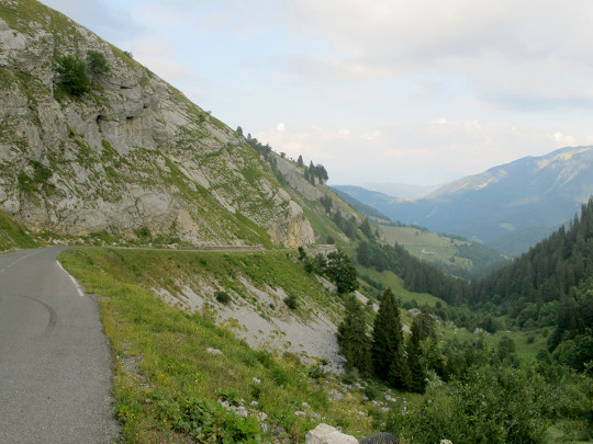 Col de la Colombière bietet auf der Südrampe zunächst feinstes Käffer-KungFu. Ein Dorf nach dem anderen, ist schon ein wenig anstrengend. Kurz vor der Passhöhe wird es dann aber nett. Offene Landschaft, viel Fernblick, schroffe Felswände.