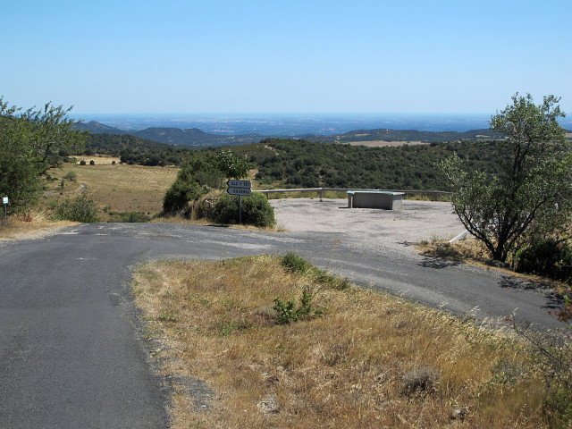 Von diesem Aussichtspunkt aus sind es nur noch wenige hundert Meter, bis man auf der breit ausgebauten Hauptstraße landet. Gleich voraus am Horizont ist das Mittelmeer zu sehen, der Blick geht geradewegs nach Osten.