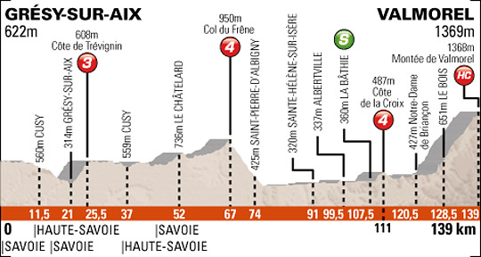 Côte de la Croix (487 Meter). Das Etappenfinale ist eine Bergankunft im 1.369 Meter hohen