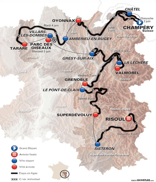 Samstag den 9. Juni statt. Im Schnitt 1.100 Kilometer (französische und englische Webseite sind sich da nicht ganz einig) durch die französischen Alpen, vom