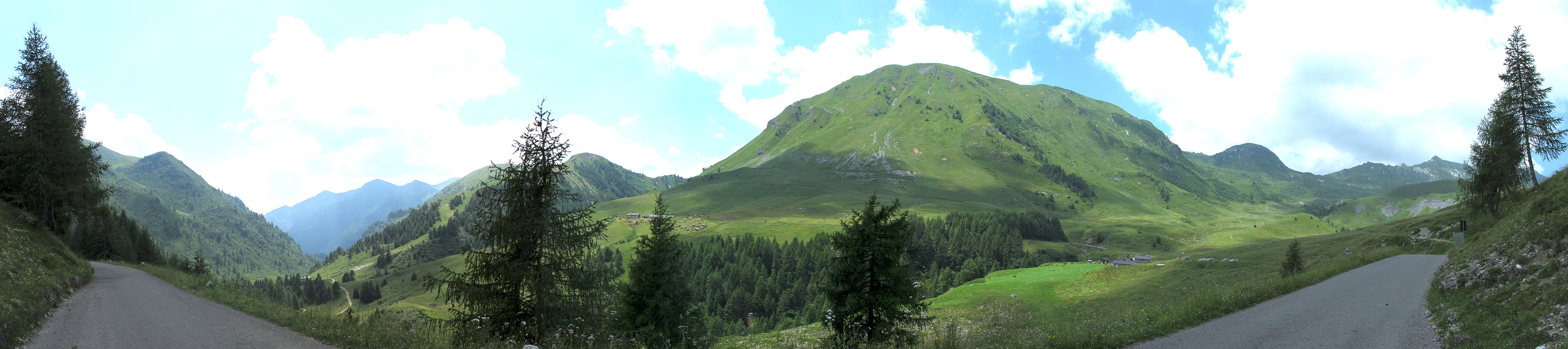 Liegen die heftigsten Straßenschäden und der waldige Abschnitt hinter einem, deren letzte Ausläufer links noch zu sehen sind, liegen rund 4 Kilometer in offenem Gelände vor einem. Die Fahrt geht zuerst nach rechts (hier Norden), windet sich dann an dem hohen Berg rechts der Bildmitte nach oben, und führt durch den Bergeinschnitt etwas links der Bildmitte hindurch weiter nach Westen.
