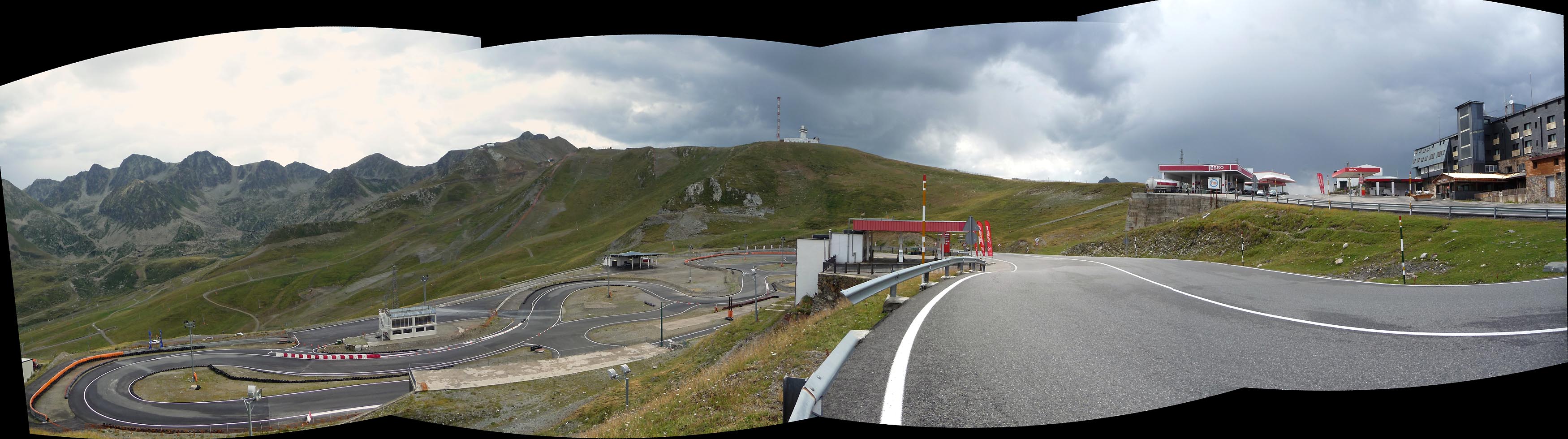 Kurz vor der Passhöhe, die oben rechts schon zu sehen ist, befindet sich eine Kartbahn. Bei meiner Überquerung an einem Montag im August des Jahres 2009 war dort jedoch tote Hose.