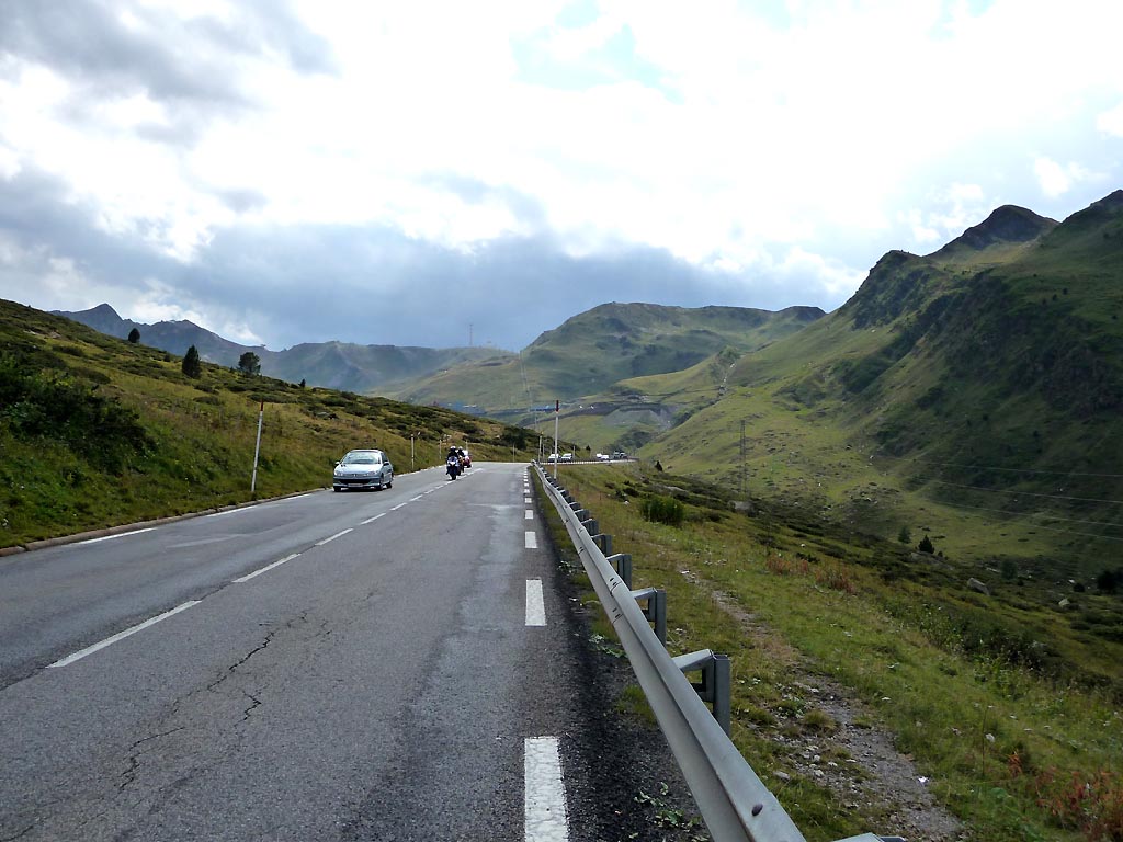 Auf dem kleinen Stück zwischen der Grenze und dem Ort Pas de la Casa ist die Straße meist weitaus voller als auf dem Bild zu sehen, ich habe den erstbesten Moment mit wenig Verkehr für eine Aufnahme genutzt. Pas de la Casa befindet sich in Fahrtrichtung.