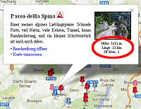 Zu manchen Pässen, die ich noch nicht gefahren bin aber generell auf meiner Wunschliste stehen, habe ich ein paar Vorab-Informationen hinterlegt, die entweder sehr offensichtlich sind (z.B. ob asphaltiert, geschottert, gesperrt), oder einfach zu bekommen waren (Google-Route). Diese und andere Infos stammen aus dem Internet, wurden von Kartenmaterial abgeleitet und/oder habe ich in diversen Fernsehsendungen erfahren, allen voran Übertragungen von Radrennen (Giro, Tour de France).