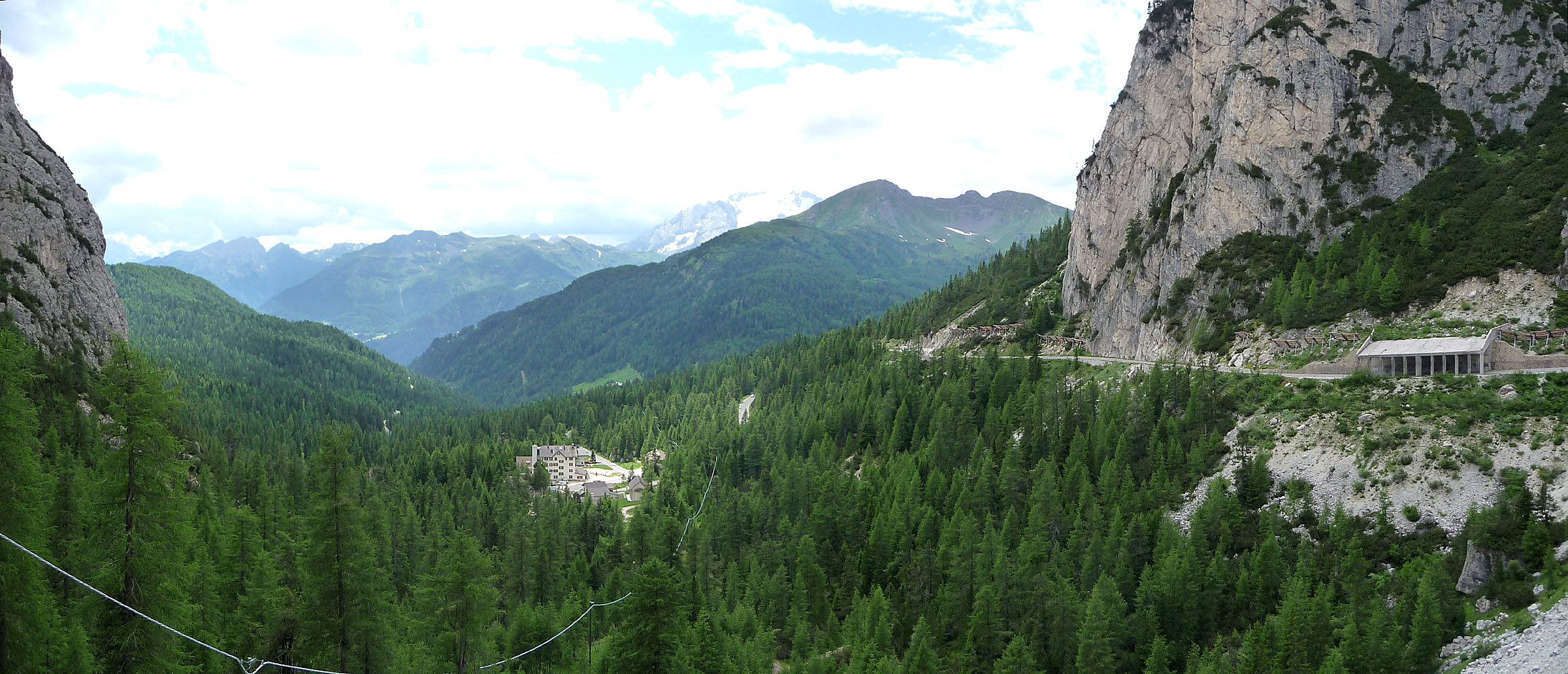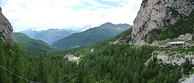 Blick ins Tal, aufgenommen aus dem felsigen Bereich, zwischen den Galerien und dem Tunnel.