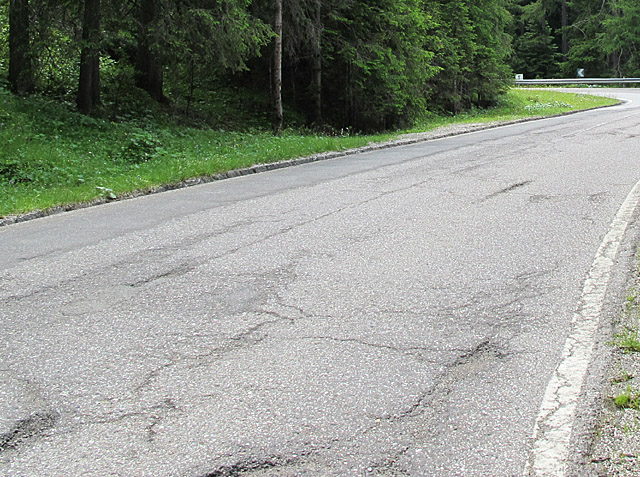 Mindestens auf der Westrampe bestand die Straße 2010 aus viele kleine Rissen.