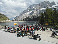 Die Passhöhe wird durch den Stausee Lago di Fedaia zweigeteilt.