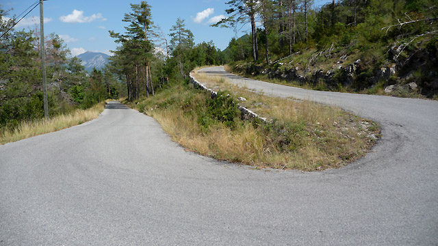 Eine von mehreren Kehren auf der Nordrampe. Von der Stelle kann man das letzte Mal einen Blick auf den Ausgang der Schlucht werfen, die sich östlich der Rampe von Norden nach Süden zieht.
