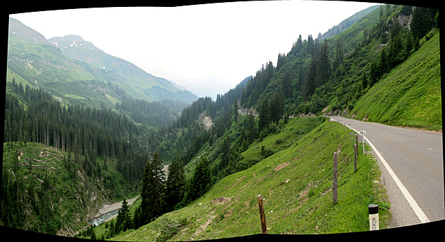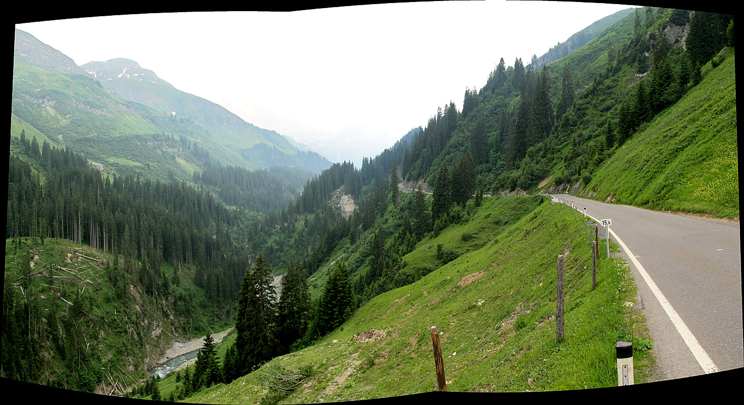 Der Blick geht Richtung Süden und somit zur (noch 10 Kilometer entfernten) Passhöhe.