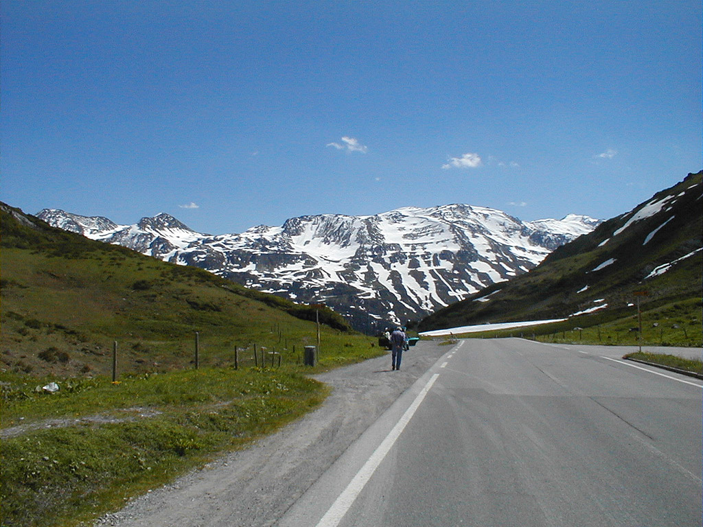 Die ersten Meter der Südrampe, fotografiert von der Passhöhe aus.