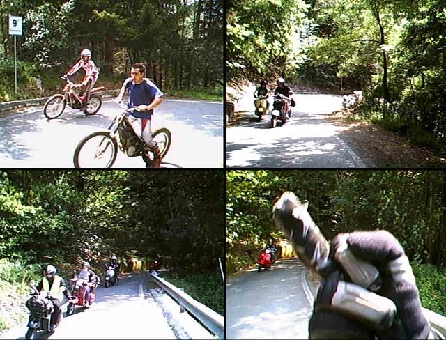 Auf der Nordrampe kamen mir bei meiner Überquerung im Jahr 2010 zuerst ein paar Kiddies auf Trials entgegen, mitten auf der Straße, versteht sich, anschließend unzählige Rollerfahrer. Gefahren sind sie allesamt wie Sau, mehrmals wäre es fast zu Zusammenstößen gekommen. Alle Bilder wurden dem Video einer (miesen) Helmkamera entnommen, die während der Fahrt lief.