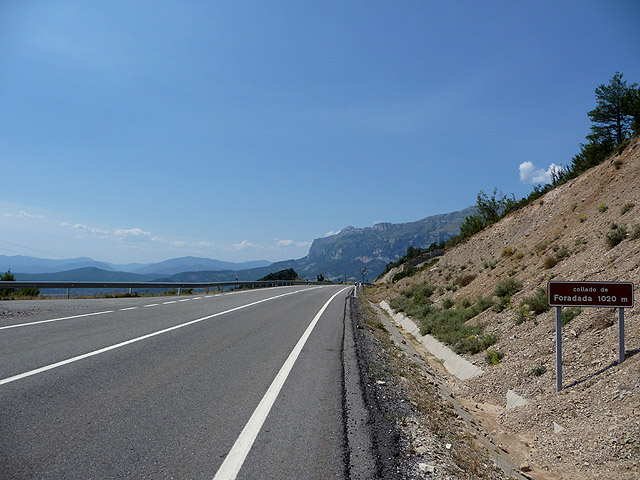 Wer nicht aufpasst, zischt an der Passhöhe des Collado de Foradada einfach vorbei. Links ist noch eine kleine Parkbucht, aber viele Gründe, ausgerechnet an dieser Autobahn eine Pause zu machen, gibt es nicht.