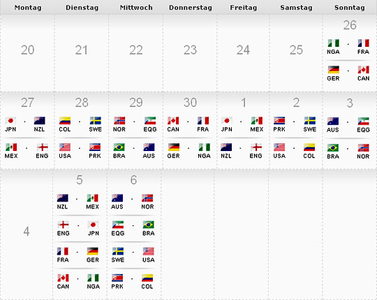 Die Gruppenphase beginnt am 26. Juni, das letzte Spiel wird in den späten Abendstunden des 6. Juli bestritten.