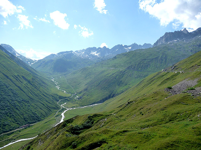 Der dünne gerade Strich neben dem Bergbach ist die Bahntrasse der alten Furka-Bahn.