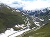 Die beste Aussicht von unten auf das Tal, den Ex-Gletscher und die Furka-Westrampe hat man in der ersten Kehre hinter der langen Geraden, die parallel zum Talfluß nach Westen führt.