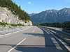 Die Straße zieht sich derweil auf zwei gut ausgebauten Spuren durch die Landschaft, mal hoch und mal runter, der gute Belag lässt zügiges Fahren zu. Dies beherzigen auch viele Biker, bei einem kurzen Stopp konnte ich mehrere eilige Personen auf meist hochtourigen Maschinen sehen und schon von weitem hören. Durch das ständige auf und ab erinnert die ganze Westrampe eher an eine Taldurchfahrt, ist aber nichtsdestotrotz nett zu fahren.