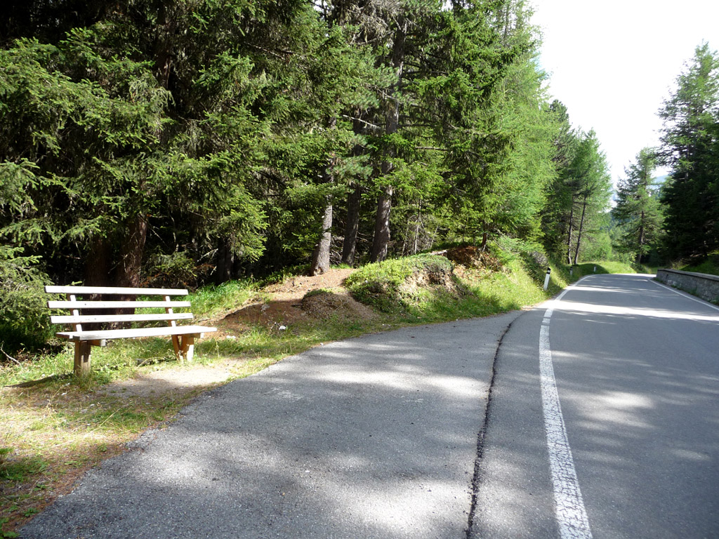 Kleine Raststelle im unteren Teil der Nordrampe. Direkt an der Straße gelegen kann man hier Biker zählen.