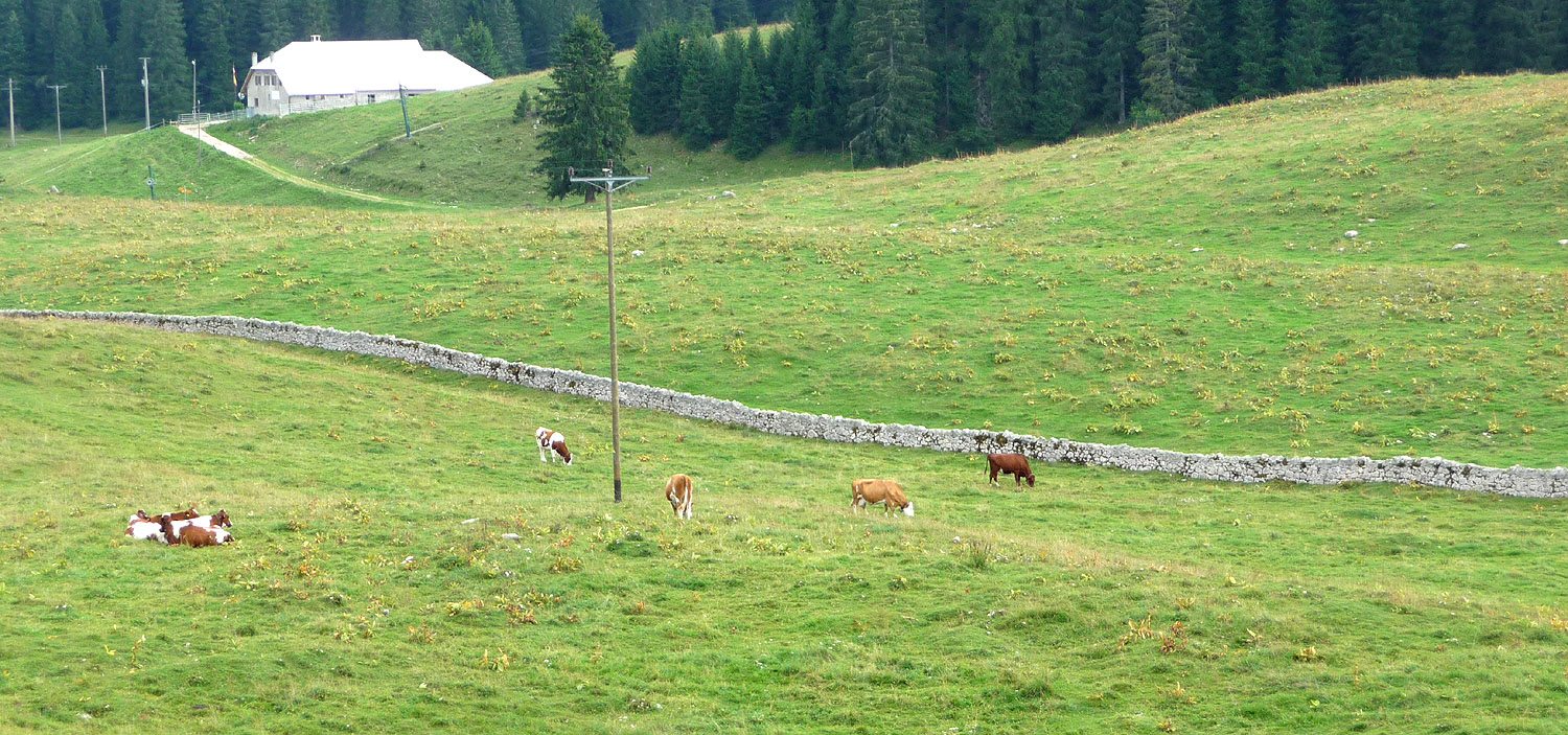 Rund um die Passhöhe sind die Weideflächen von rund mannshohen Mauern durchzogen.