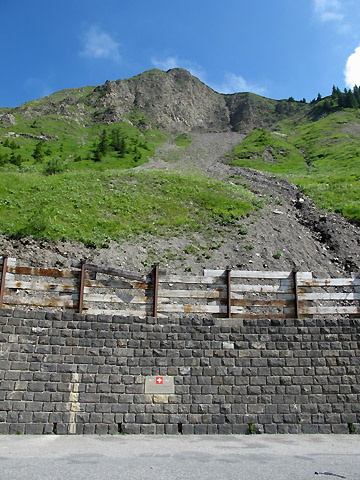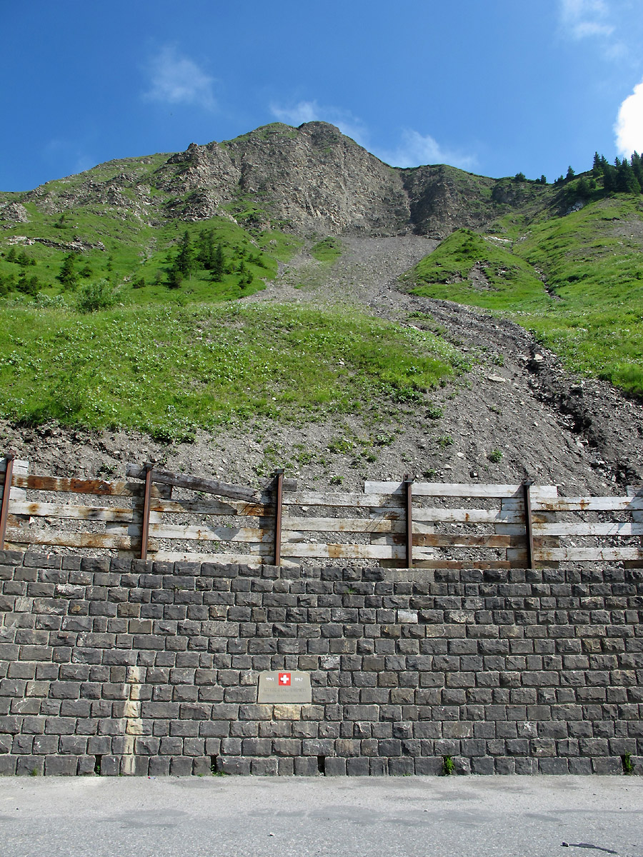 Oberer Teil des Pfades, über den hin und wieder eine Gerölllawine ihren Weg talwärts sucht.