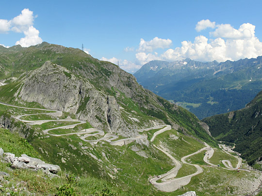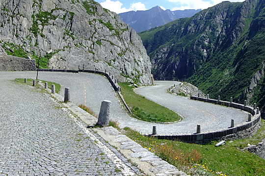 Furka-Runde. Das besondere an ihm ist seine Südrampe, die alte Tremolastraße, deren Belag aus Kopfsteinpflaster besteht.